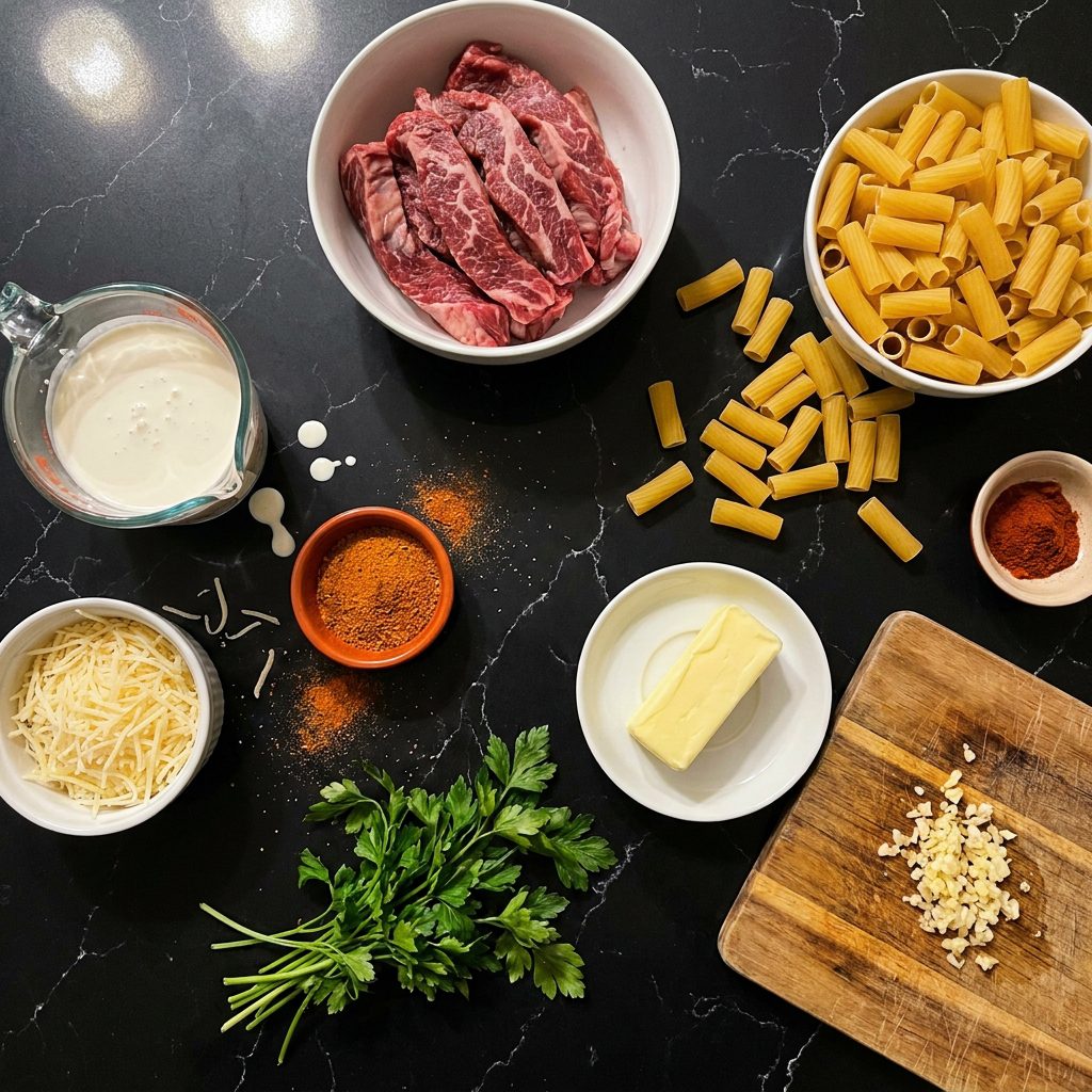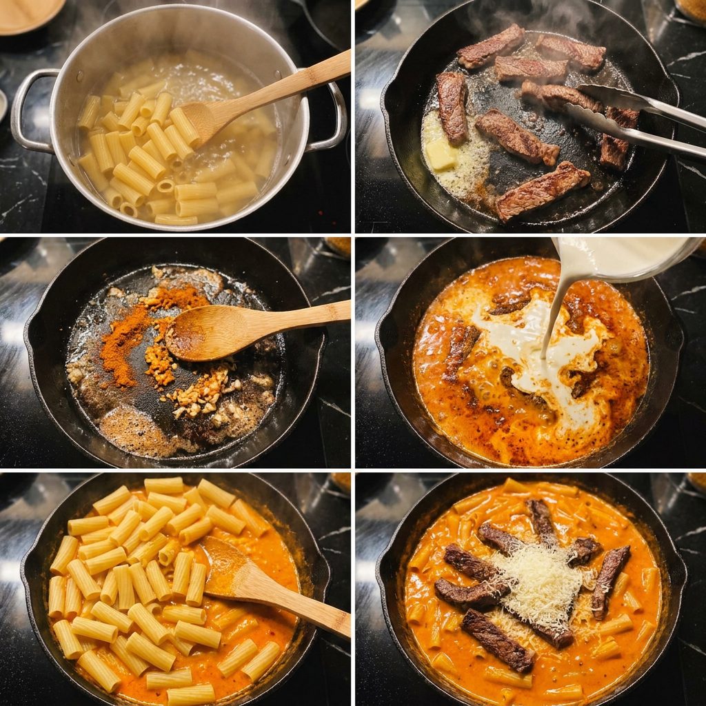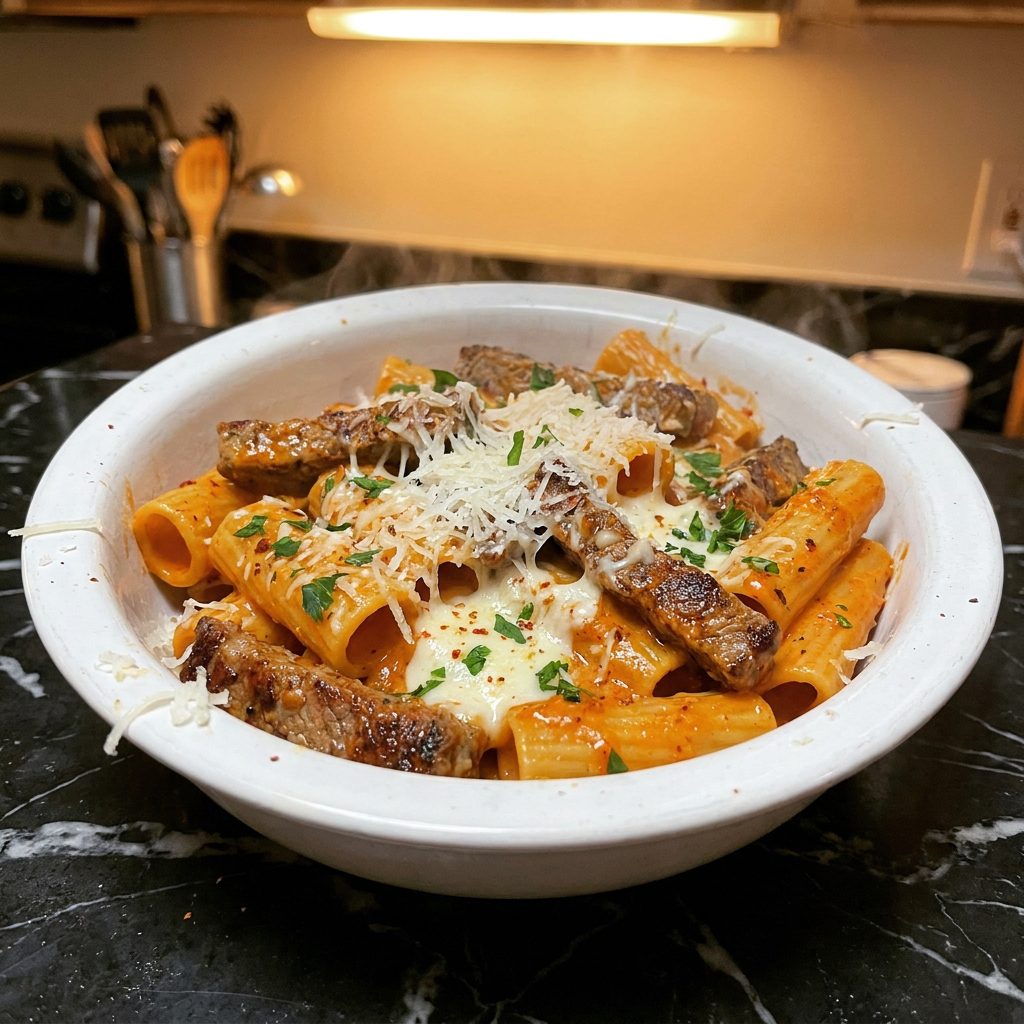The magic here is in the contrast. You’ve got the bold heat of Cajun seasoning cutting right through the richness of the cream and Parmesan. The steak adds a smoky savory depth that you just don’t get from regular pasta dishes. And the rigatoni — those ridged tubes hold onto every drop of that sauce so every single bite is loaded. It’s pasta night but make it actually exciting.