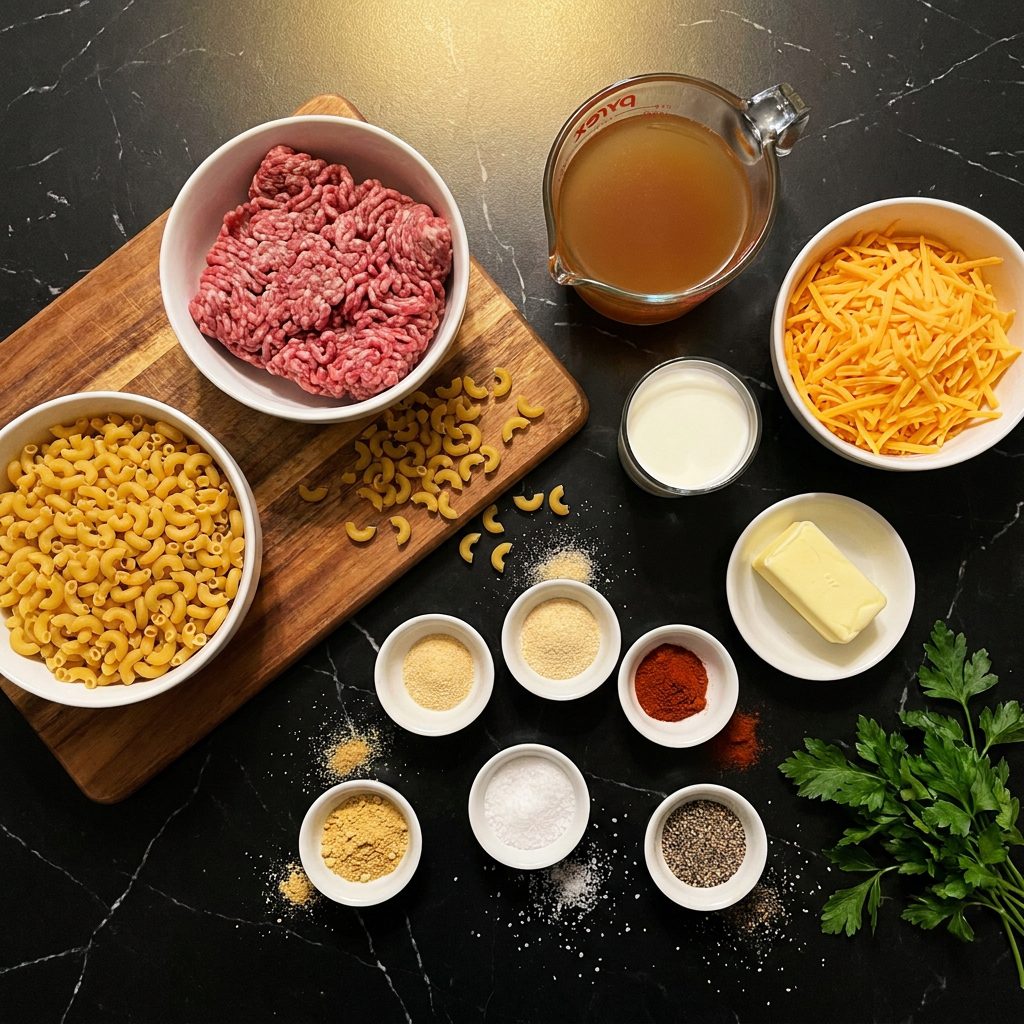 Ground turkey or chicken work great here if you want a lighter version — just add a little extra seasoning since they’re milder than beef. Shells, rotini, or ditalini can replace elbow macaroni — any small short pasta shape works. Chicken broth can replace beef broth for a lighter flavor. For extra richness swap the milk for half-and-half or a few tablespoons of cream cheese stirred in at the end. Pepper jack, Colby, or a Mexican cheese blend all melt beautifully if you want to mix things up.
